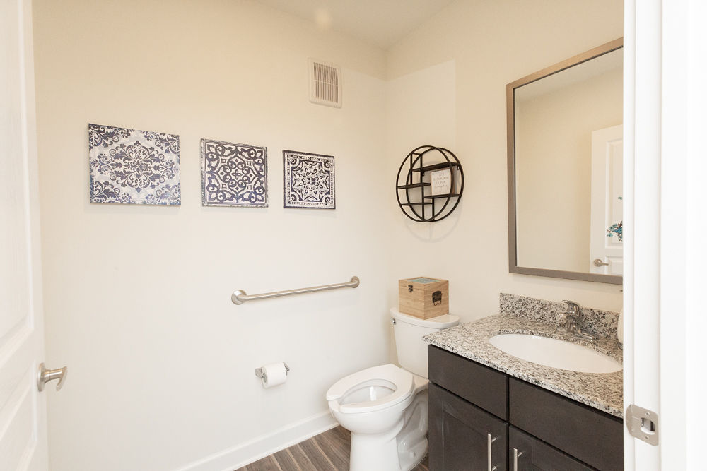 - Luxury vinyl tile in the kitchen, living room and bathrooms
